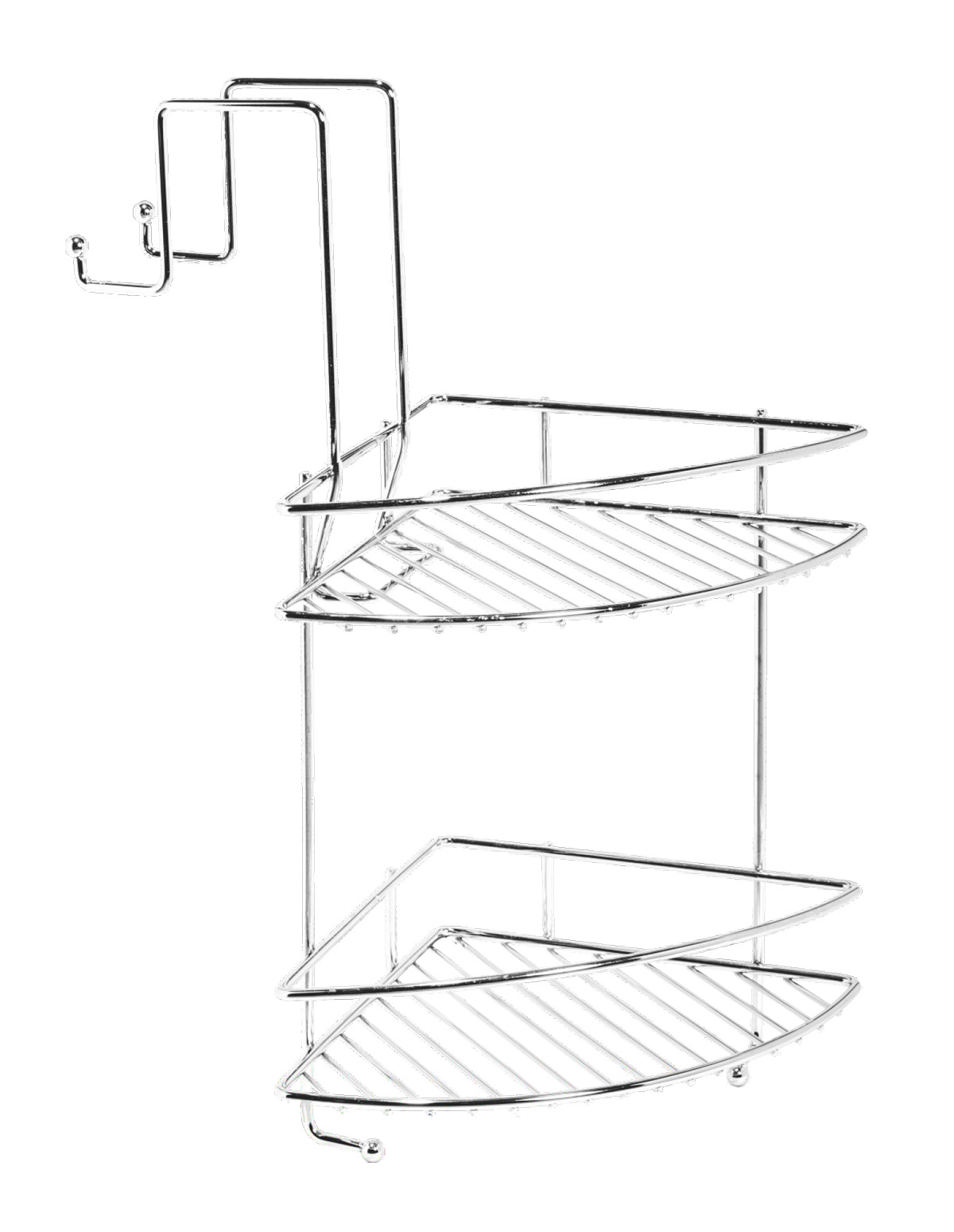 Cestello doccia angolare con doppio ripiano in acciaio cromato, perfetto per evitare fori sul muro. Molto pratico, si aggancia con facilità e si adatta a qualsiasi tipologia di bagno