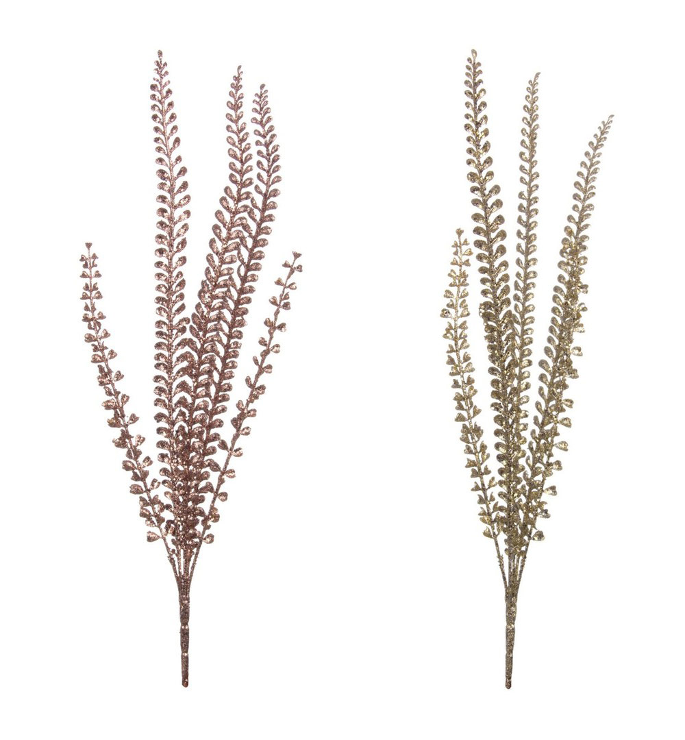 Ramo natalizio Jolly disponibile di colore oro e oro rosa, alto 50 cm, ideale per realizzare composizioni e decorazioni di natale.