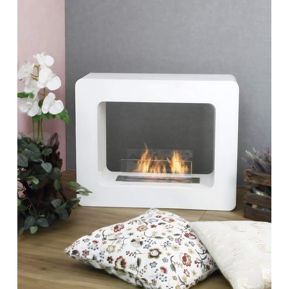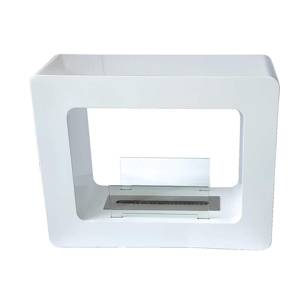 Caratteristiche: Camino bifrontale – Bioetanolo – Bruciatore 1,7 L – Fiamma 30 cm – 3 kW/h – Volume riscaldabile 63 m³ / 26 m² – Vetri protettivi su entrambi i lati – 74x25x60 cm – Design moderno