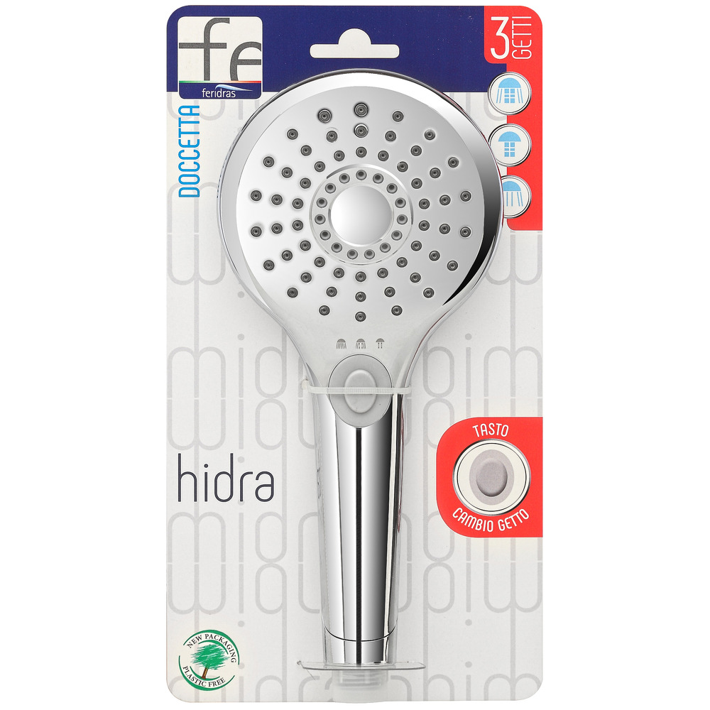 Doccetta per Doccia 3 Getti con tasto Switch della linea Hydra di Feridras. Scopri l’innovazione nella tua doccia quotidiana grazie al tasto che ti permette di cambiare istantaneamente la tipologia di getto, offrendoti un’esperienza personalizzata e dinamica. Rilassati con il massimo comfort e scopri la praticità di questa tecnologia all’avanguardia.
