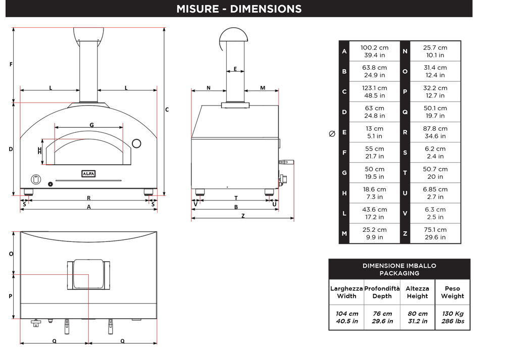 • Il piano di cottura è prodotto interamente in Alfa Forni, una expertise di oltre 40 anni, Made in Italy, con un isolamento di 8 cm.