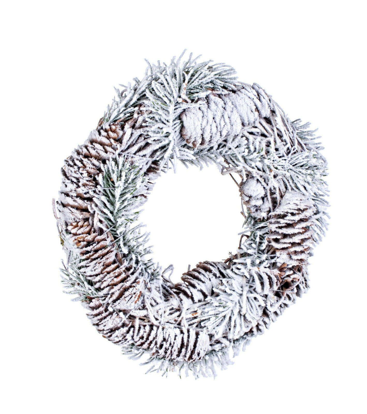 Corona di Natale innevata con Pigne, vari diametri, prodotta da Bizzotto