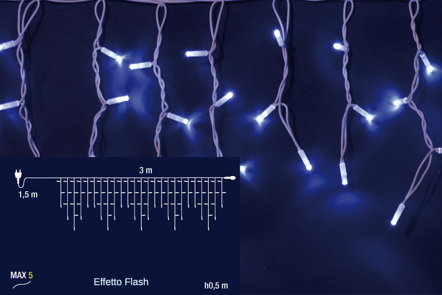 Tenda con Luci di Natale Led per uso Esterno o Interno dotata di sistema Connect ad effetto Flash, quindi intermittenti.