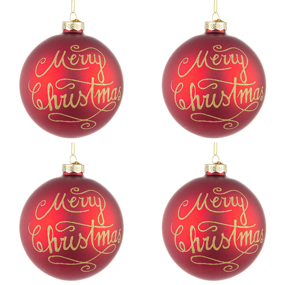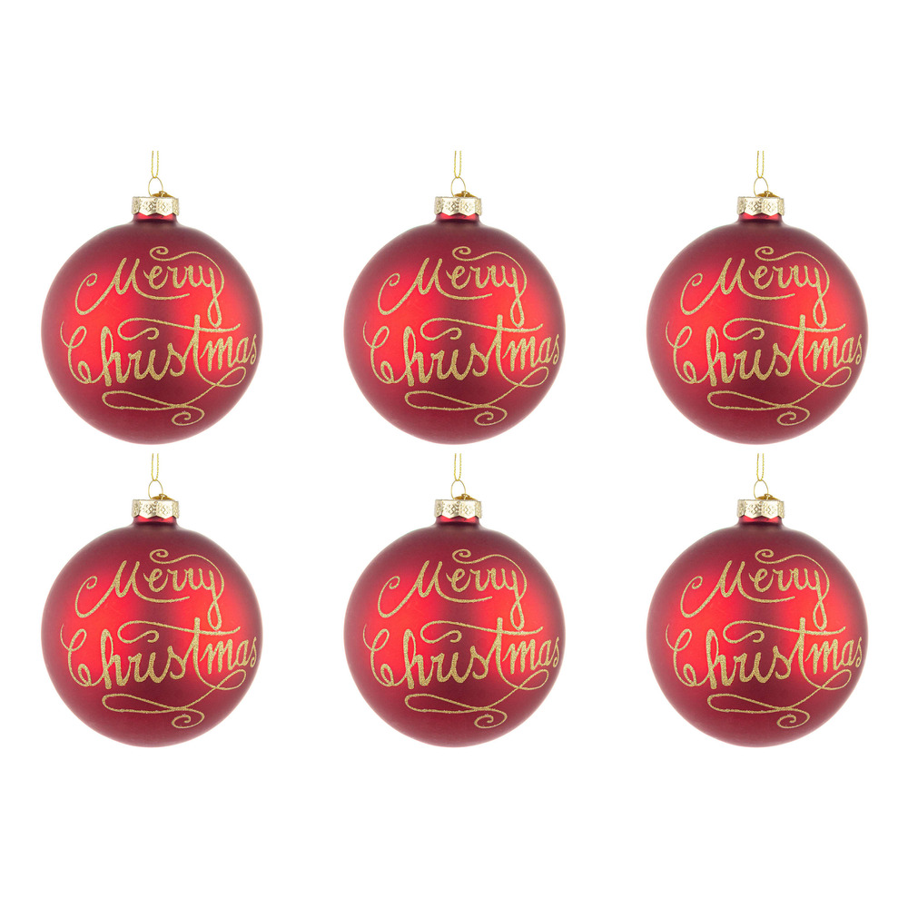 Palline di Natale in Vetro Rosse Merry Christmas
