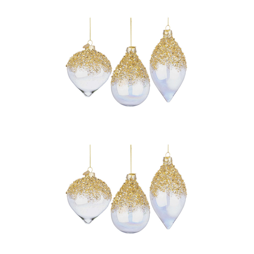 Pendagli di Natale in Vetro Iridescente e Brillantini Oro Alisia