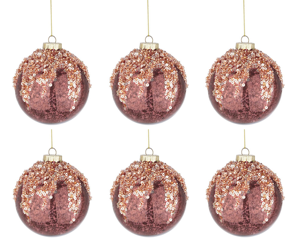 Set Palline di Natale Bizzotto composto da 4 o 6 sfere in vetro colore borgogna con paillettes