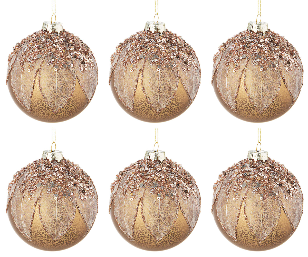 Palle di Natale in Vetro Foliage Rosa con Paillettes