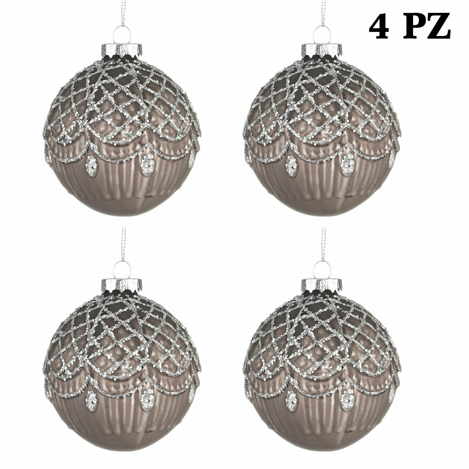 sET 4 PALLINEDINATALEINVETRO marroneeargento