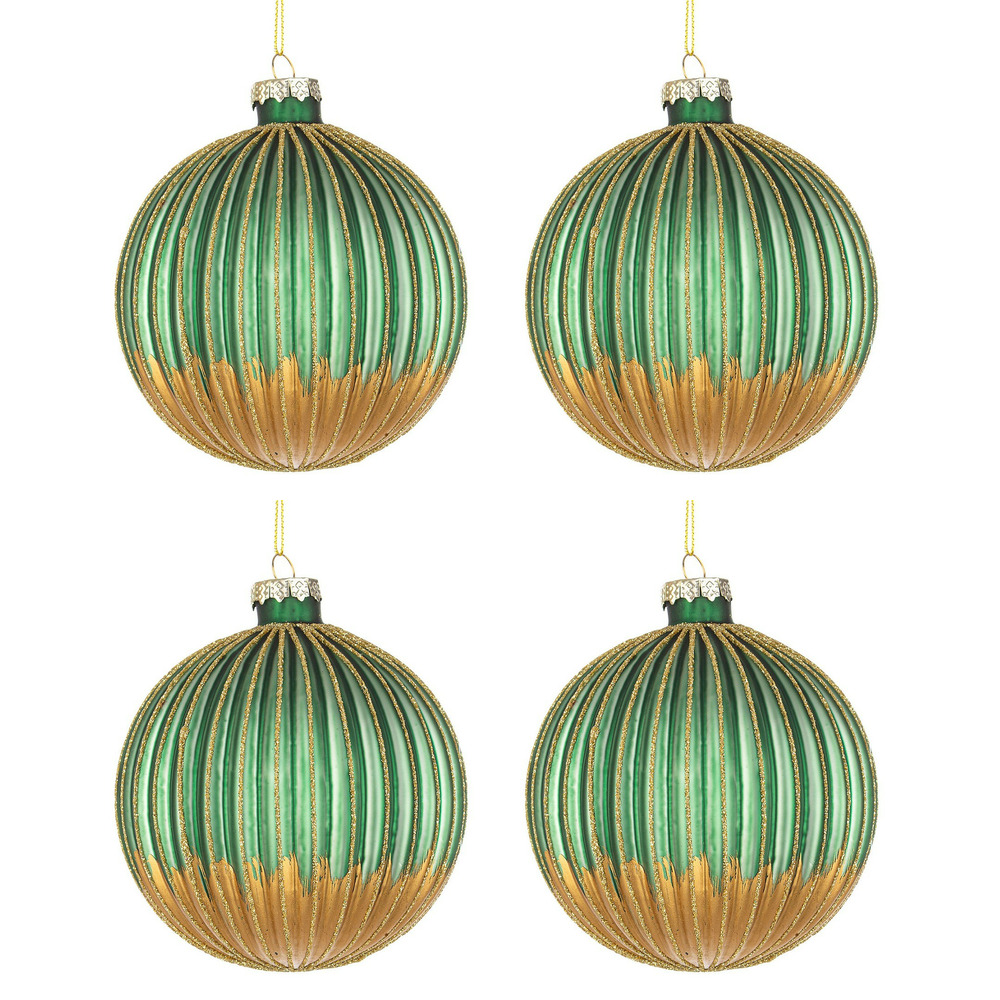 Pallina di Natale in Vetro Verde Oro Lurex Dorato Modish