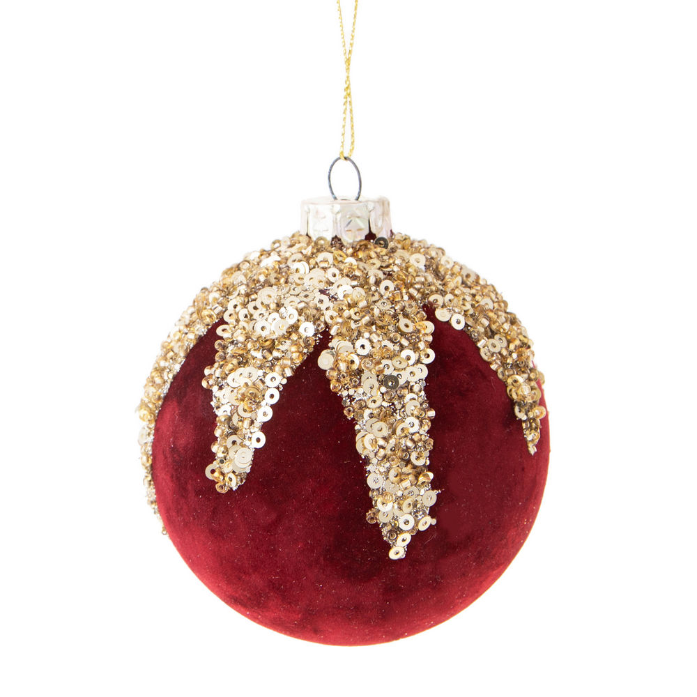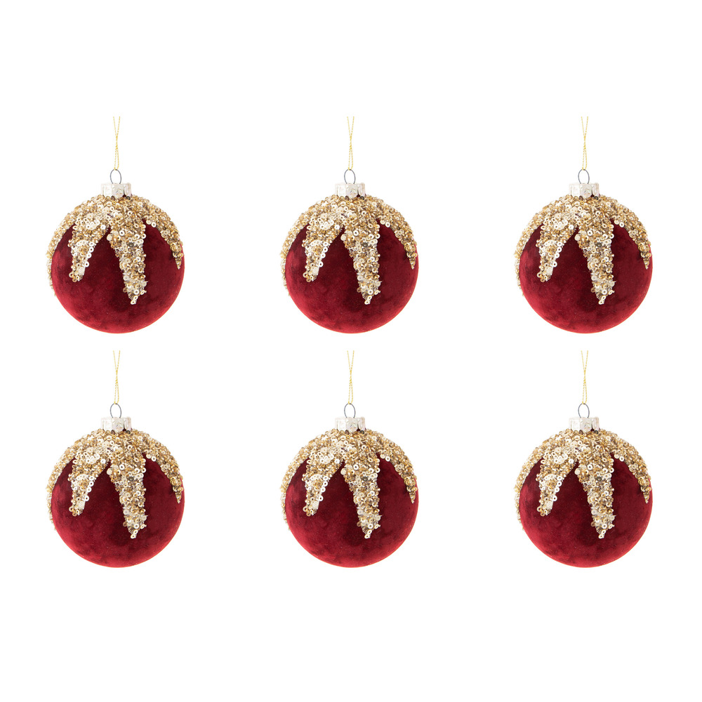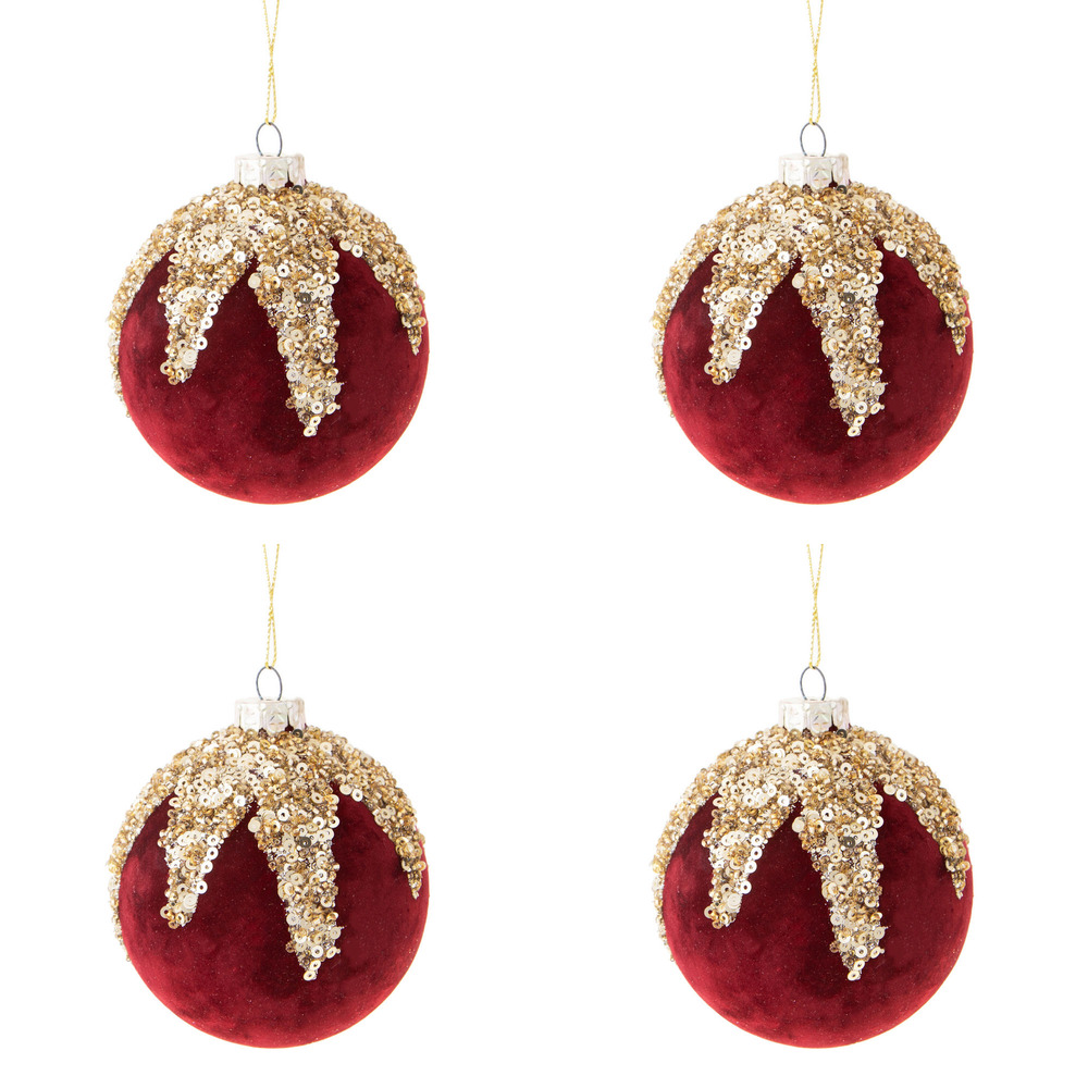 Palline di Natale in Velluto Rosso e Strass Oro