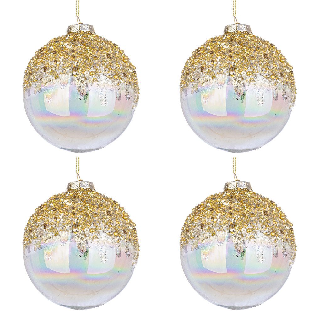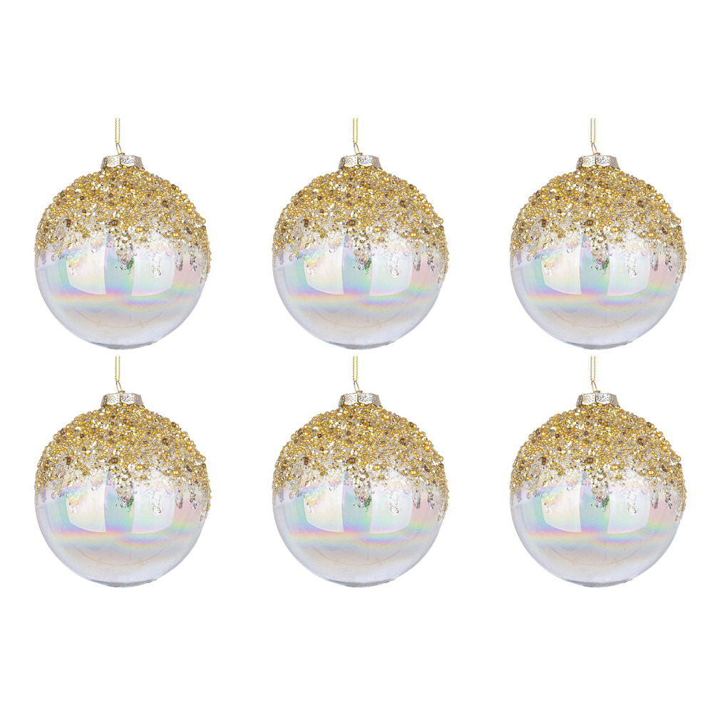 Palline di Natale in Vetro Iridescente e Brillantini Oro Alisia