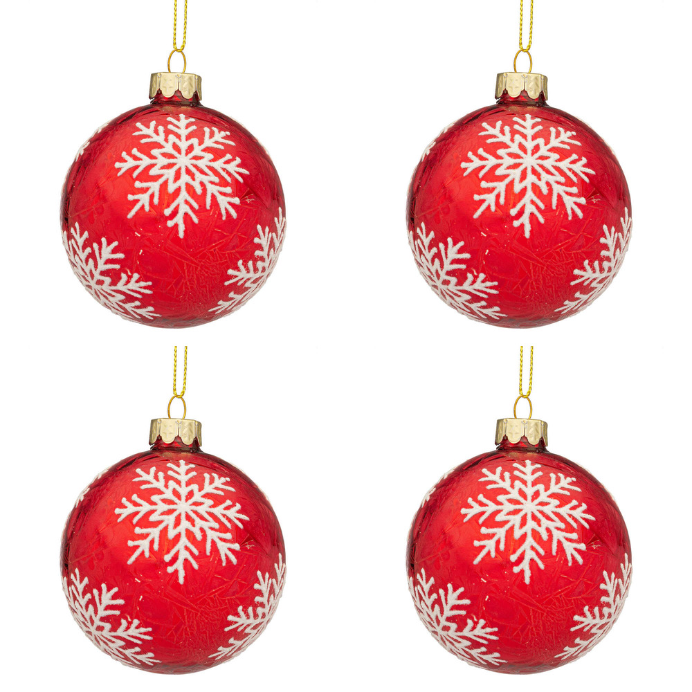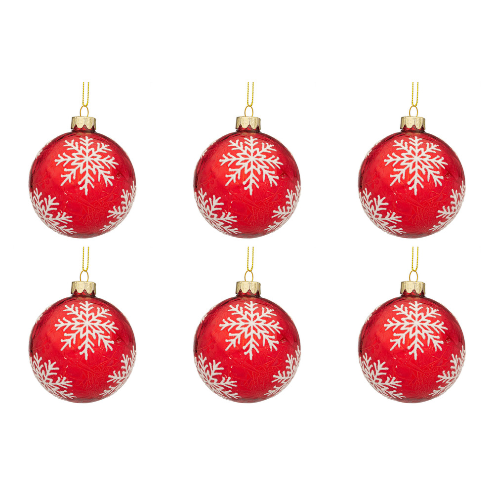 Palline di Natale in Vetro Rosse e Fiocco di Neve Blizzard