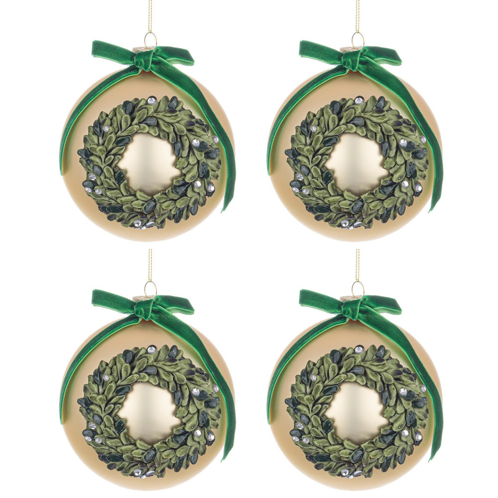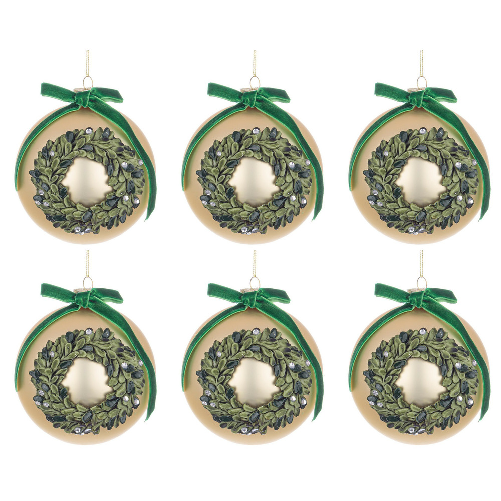 Palline Natale in Vetro Elegante con Fiocco in Raso Verde