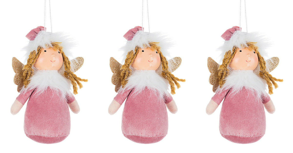 Pendaglio Albero di Natale Angelo Rosa Bizzotto 3 Pz