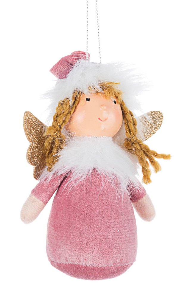 Pendaglio per Albero di Natale con angelo rosa e ali dorate. Una decorazione natalizia molto graziosa per grandi e piccini
