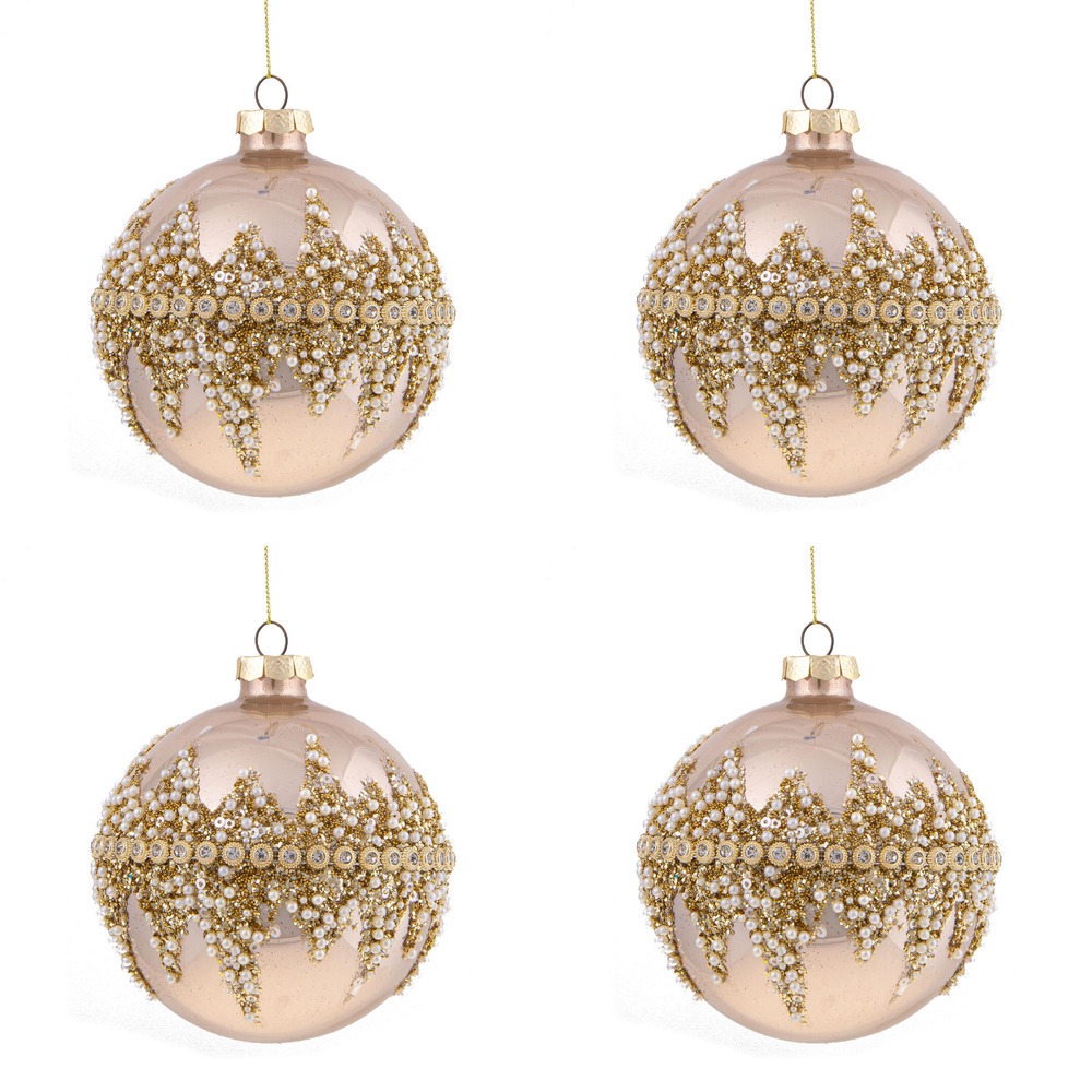 4 Palline di Natale Colore Bronzo con Paillettes