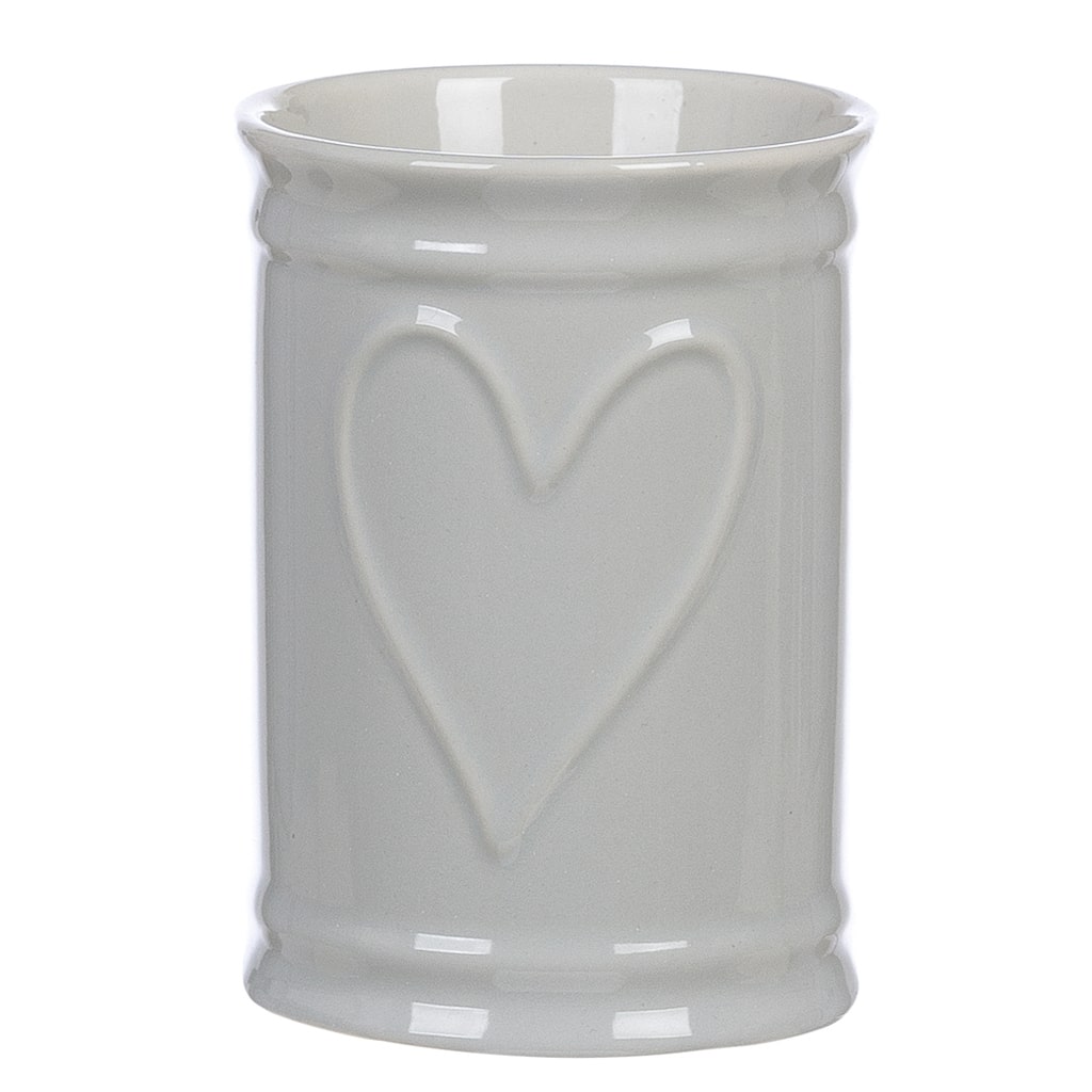 Porta spazzolini da denti di Blanc Mariclò, ideale per arredare un bagno elegante e in stile shabby chic. Realizzato in ceramica bianca di alta qualità, è finemente impreziosito da un delicato cuore in rilievo