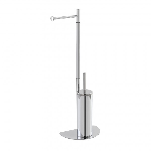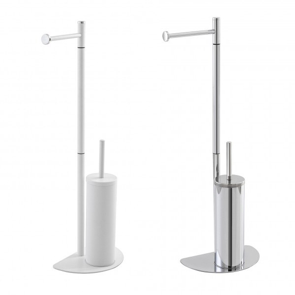 Piantana semitonda con portasopino e portarotolo in acciaio di Feridras, montata su una base di appoggio dalla forma semitonda, ideale per ottimizzare lo spazio nel tuo bagno.