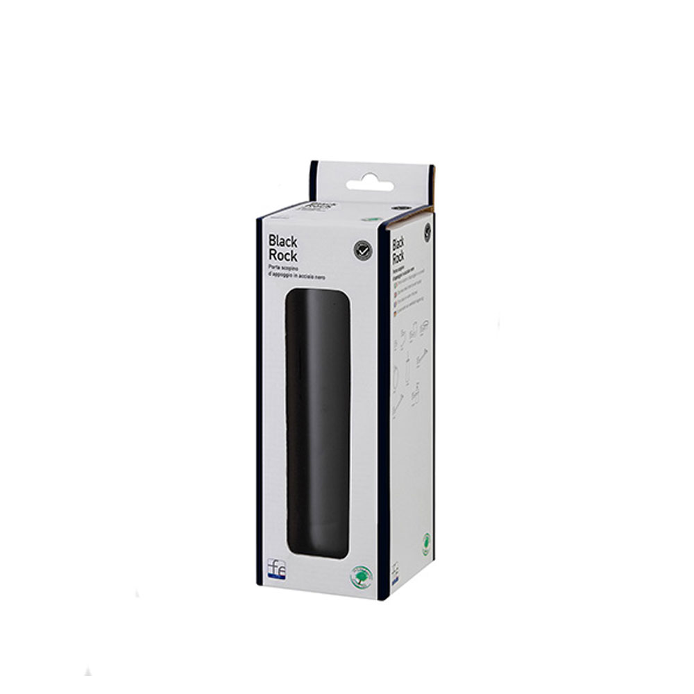 Portascopino da bagno realizzato in acciaio nero opaco proposto da Feridras, linea Black Rock, ideale in qualsiasi tipologia di bagno.