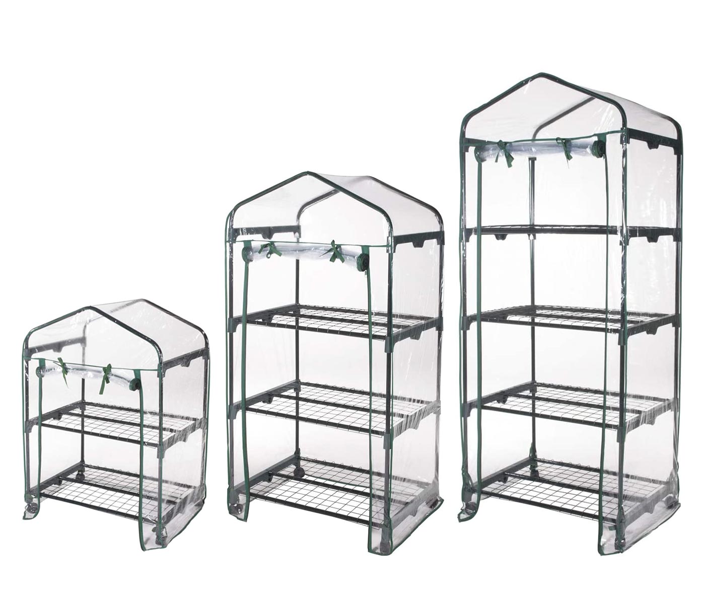 Serre da balcone compatte disponibili in varie dimensioni, da 2 3 o 4 ripiani, dotate di ruote che ne agevolano lo spostamento, ideale quindi per terrazze e balconi. La struttura portante e i piani sono in metallo verniciato mentre le parti di raccordo sono in materiale plastico.