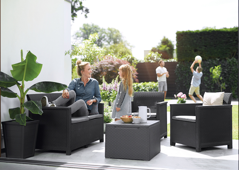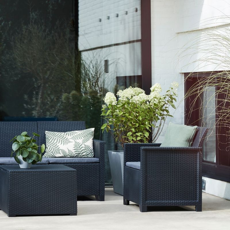 Set da Giardino Emma, perfetto per ogni situazione, disponibile nelle colorazioni Grigia o Cappuccino.