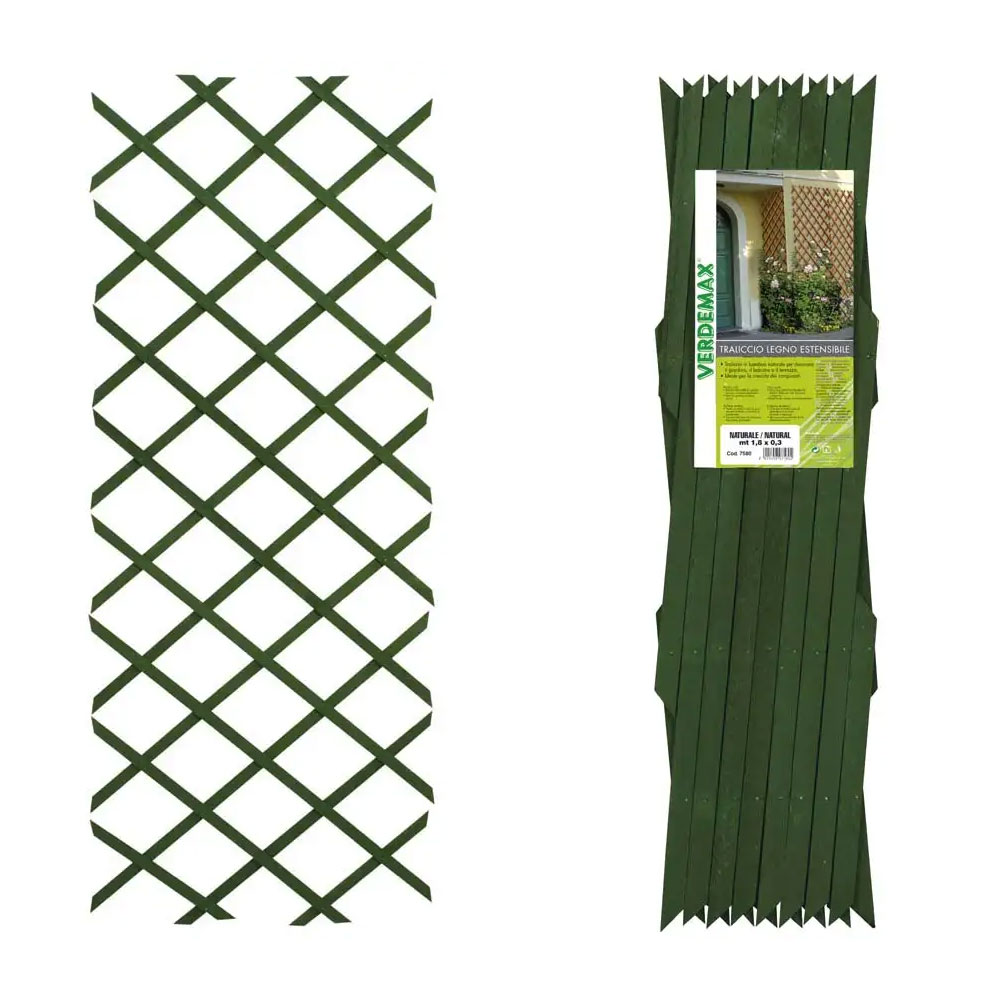 Il traliccio estensibile in legno verde Verdemax unisce estetica e funzionalità, offrendo un supporto solido e decorativo per piante rampicanti. Grazie alla sua struttura estensibile, si adatta facilmente a diverse dimensioni ed è ideale per giardini, terrazze e balconi, permettendo di creare recinzioni verdi o schermature naturali di grande impatto visivo.